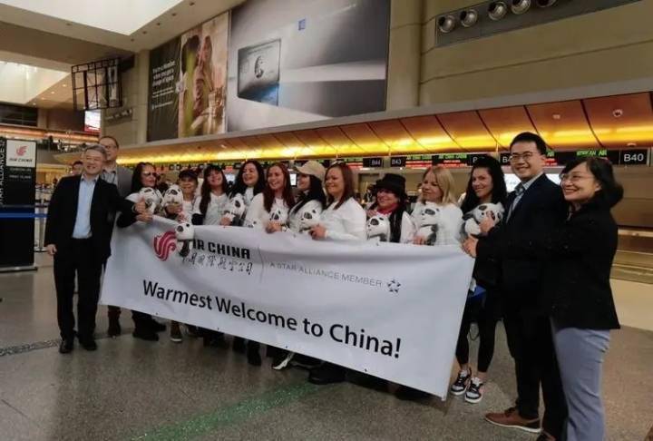 “燦爛中國游”是國文中國國際航空公司、中國駐洛杉磯總領館和中國文化和旅游部共同推出的燦爛產品從美一款創新性旅游產品。首支旅游團的中國支旅自美11名成員來自美國各地,是游首游團每年相約出游的親友。