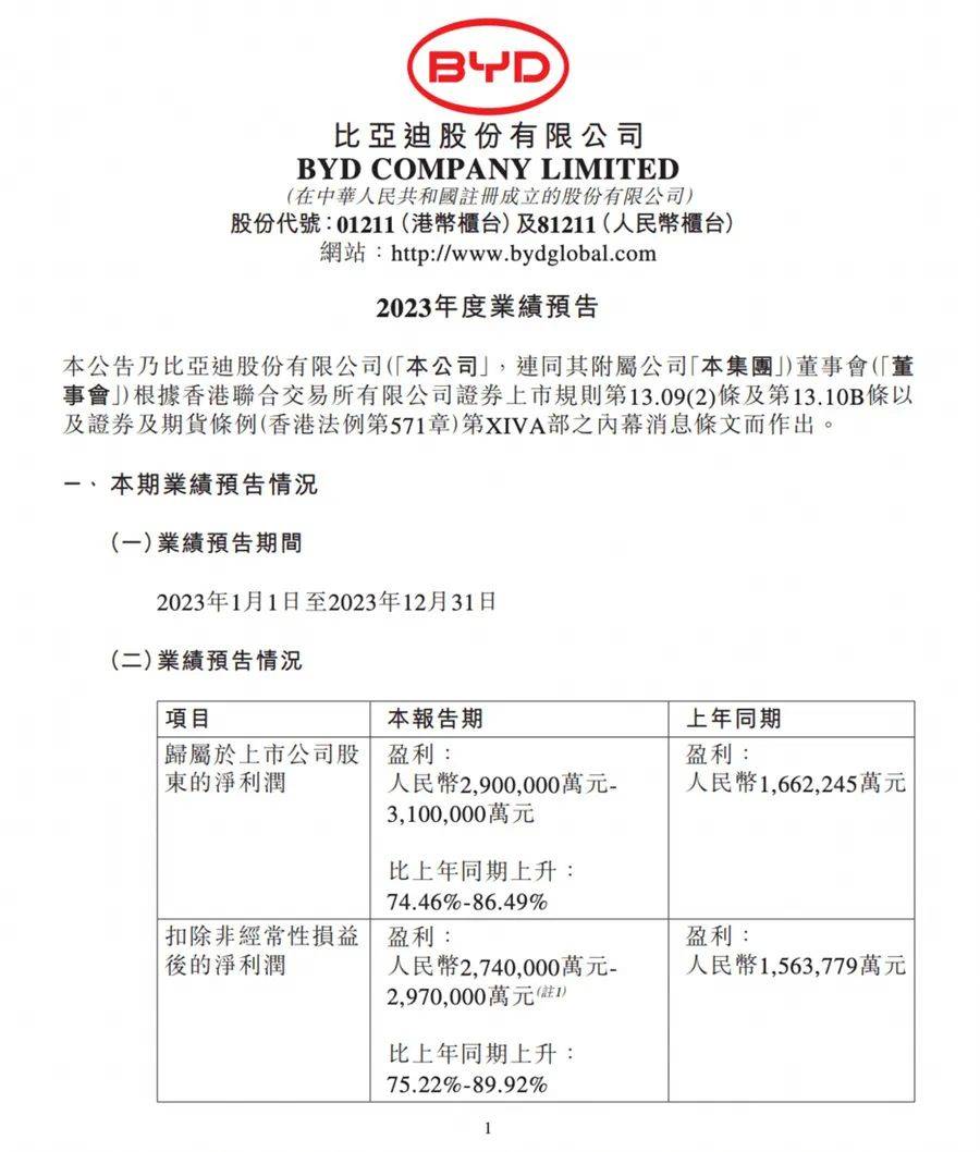 比亞迪在公告中表示,2023年內,新能源汽車行業繼續保持高速增長態勢,公司新能源汽車銷量再創歷史新高,進一步鞏固了全球新能源汽車銷量第一的領先地位。盡管行業競爭更為激烈,公司憑借品牌力的不斷提升、出海銷量的快速增長、持續擴大的規模優勢和強大的產業鏈成本控制能力,盈利實現大幅改善,展現了強大的韌性。